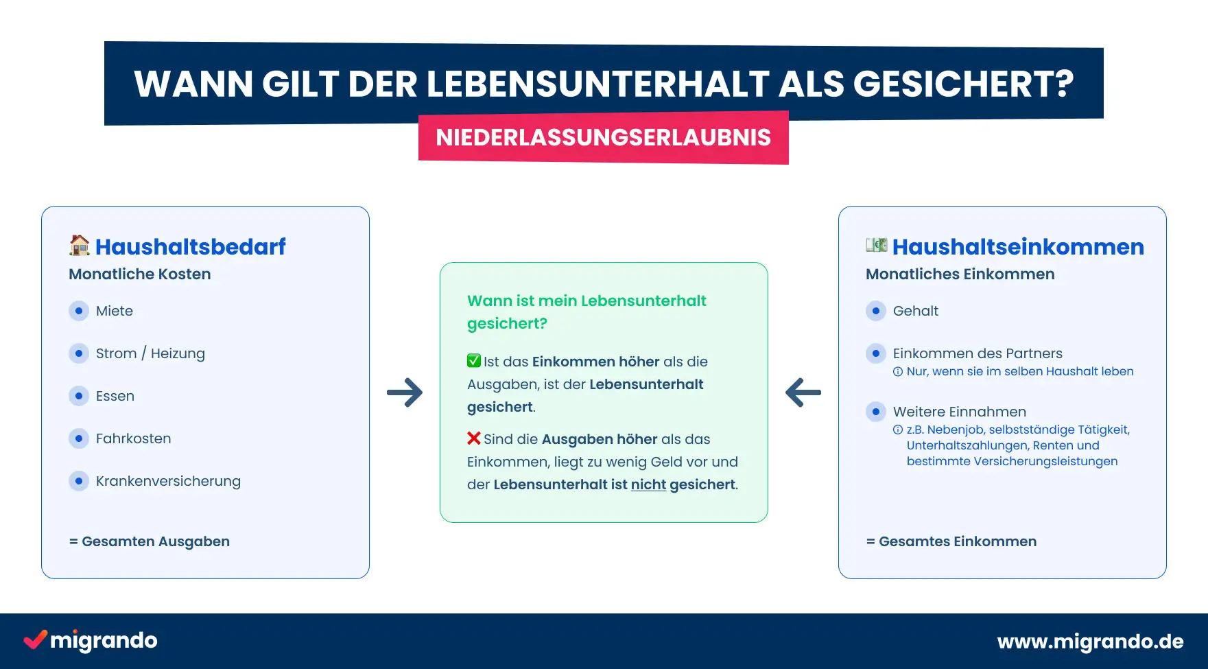 Your livelihood is considered secure if all running costs (household expenses) can be covered from your own resources (household income). You must Foreigners' office to the Foreigners' office that your available livelihood (income) is sufficient to cover the entire needs of your household.