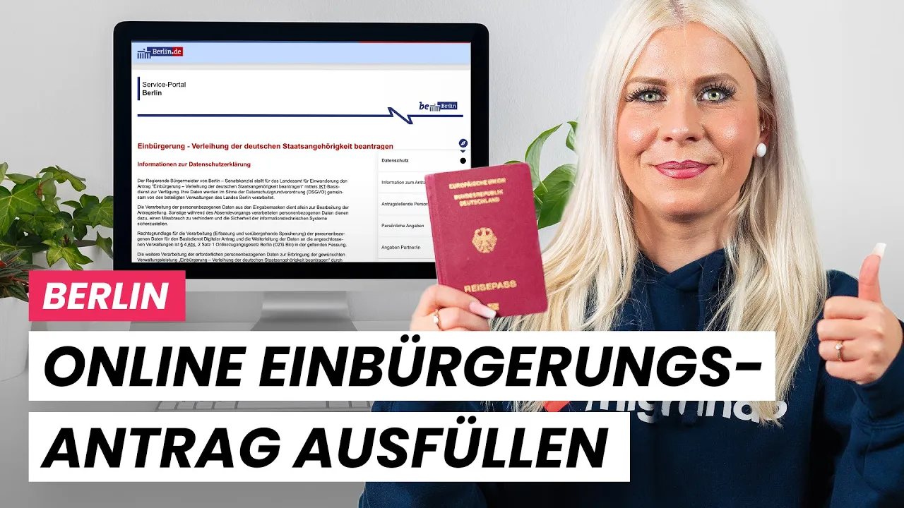 The video explains in detail how to fill out an online naturalization application in Berlin. It takes you step by step through the entire process, from visiting the relevant website to submitting the application. First, you are advised to check the eligibility requirements, e.g. via a test on migrando.de.