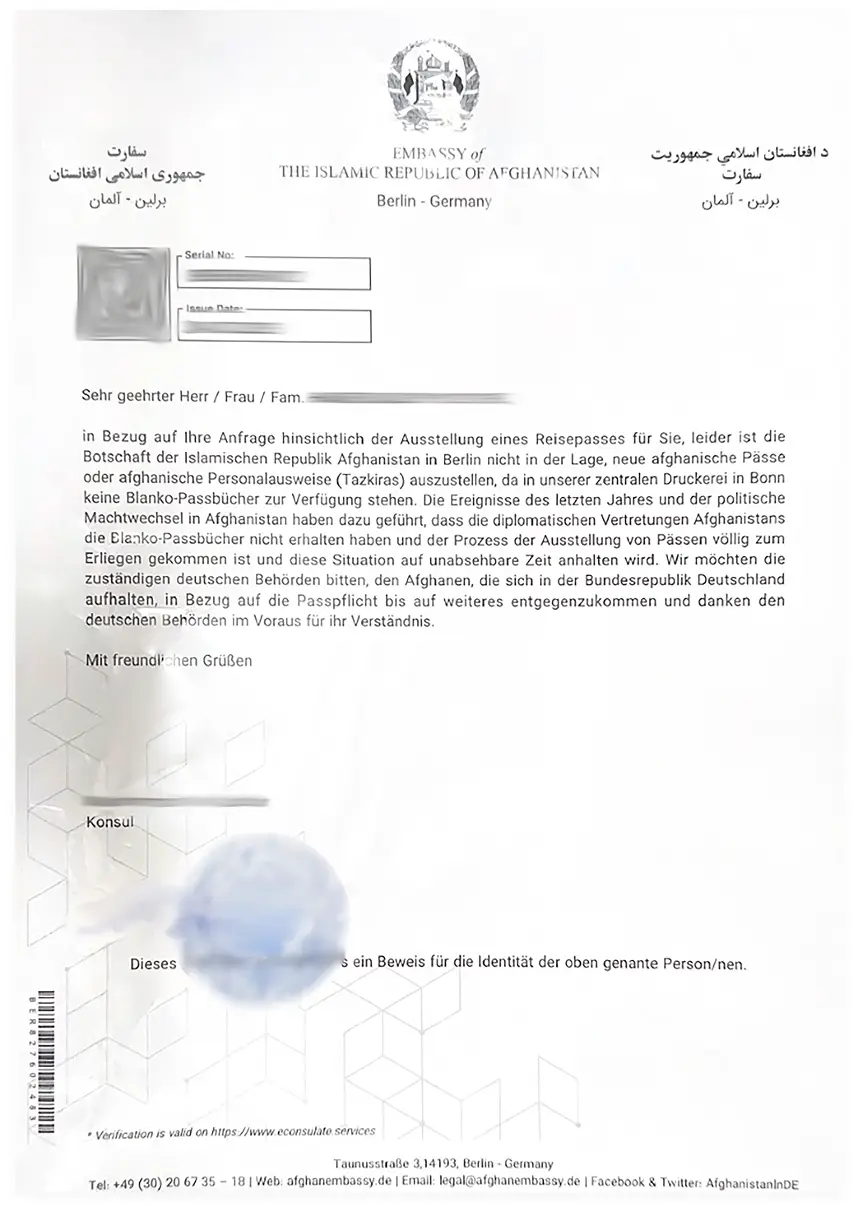 Афганский паспорт является основным документом для установления личности и необходим для многих юридических процессов в Германии: